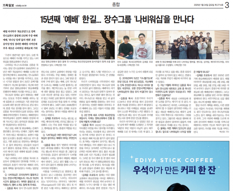 [기사, 인터뷰] 15년째 ‘예배’ 한길… 장수그룹 ‘나비워십’을 만나다(기독일보)
